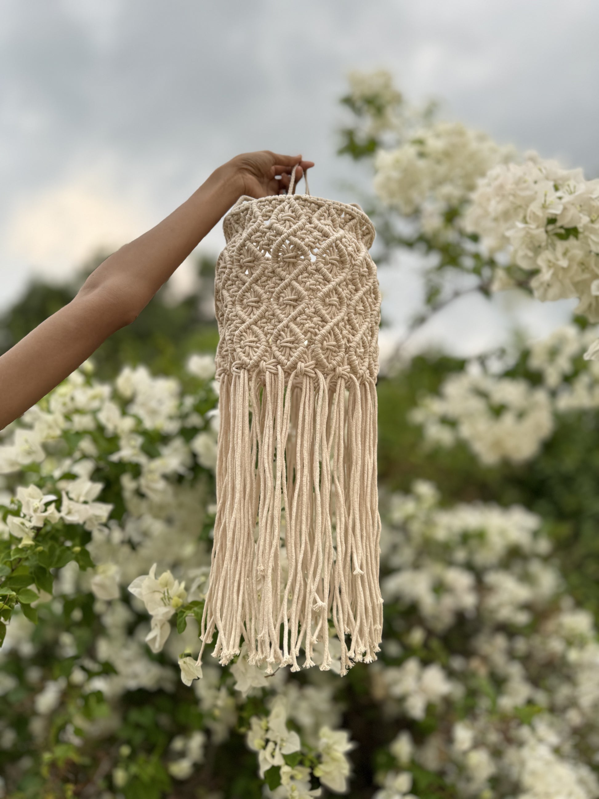 Custom lampshades and hanging chandeliers made of intricate knots