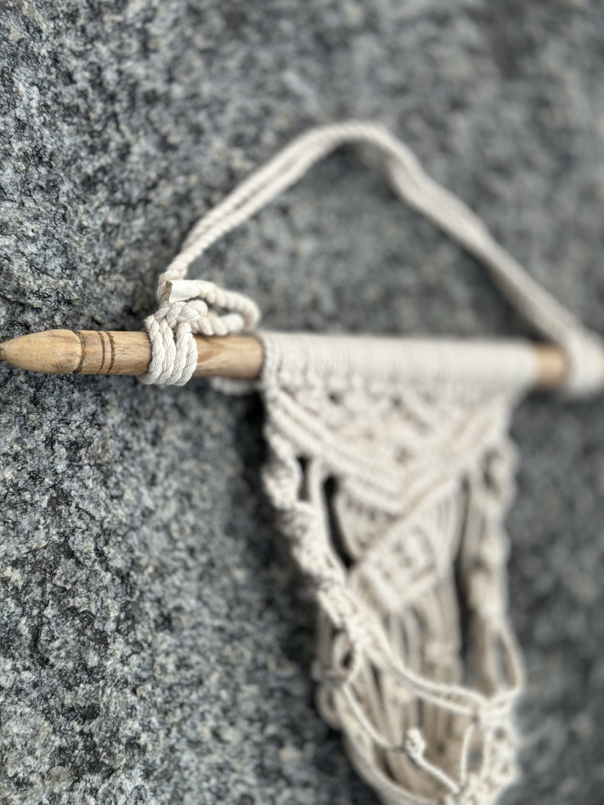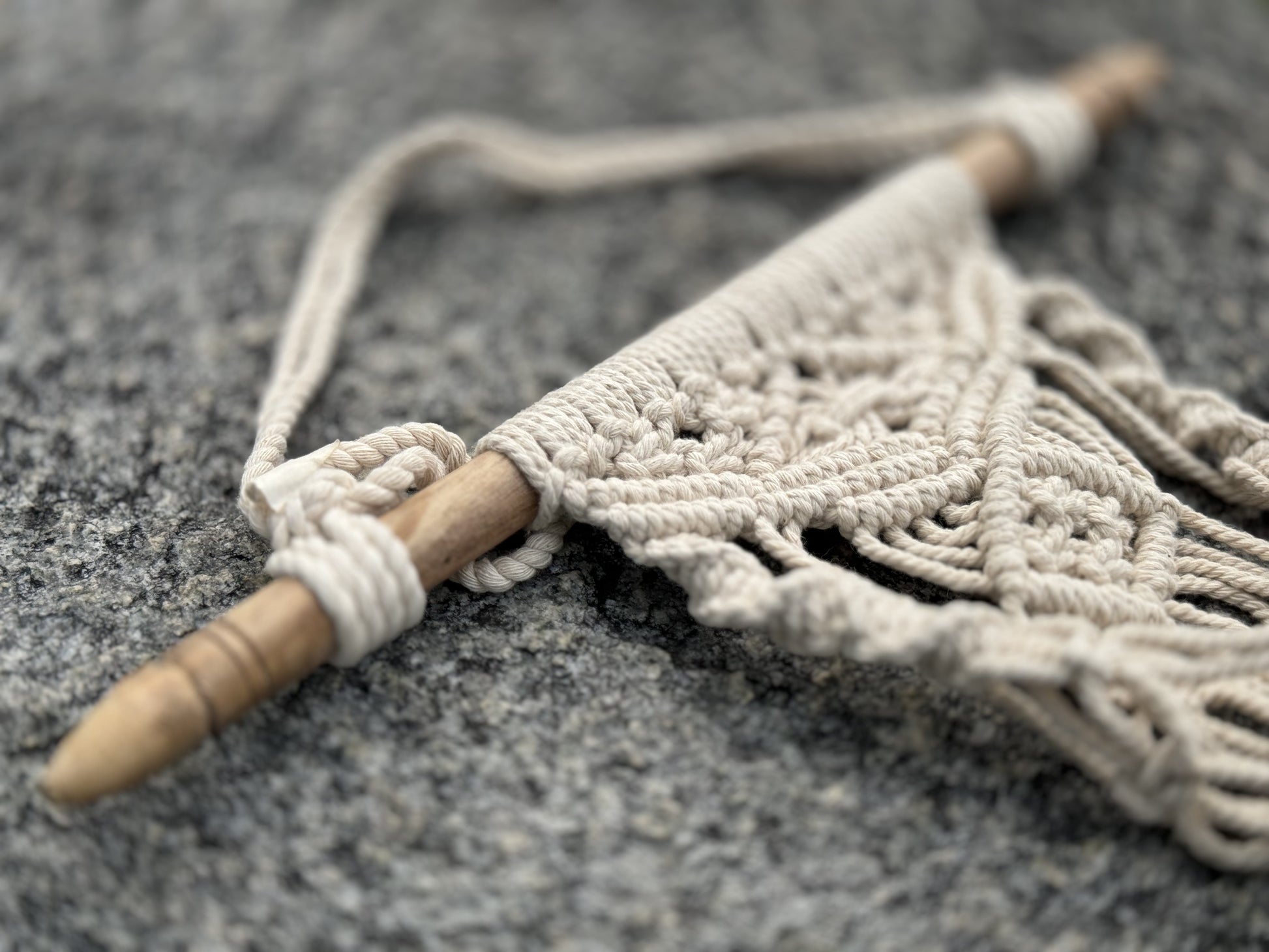 Intricately knotted and braided hanging plant holders: available in a variety of colors. Available with/without beading or acrylic tray